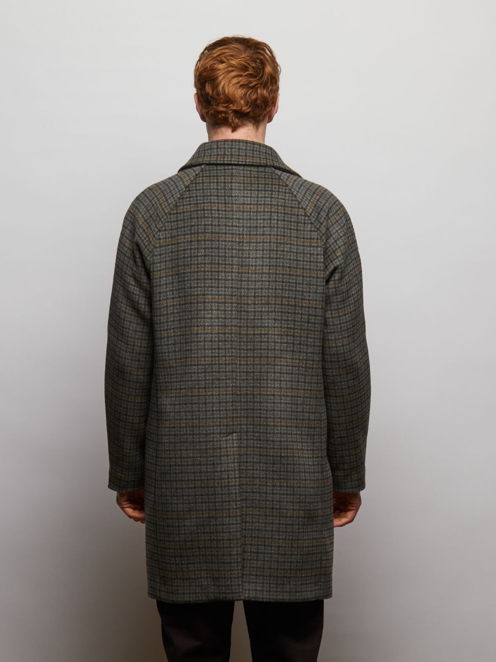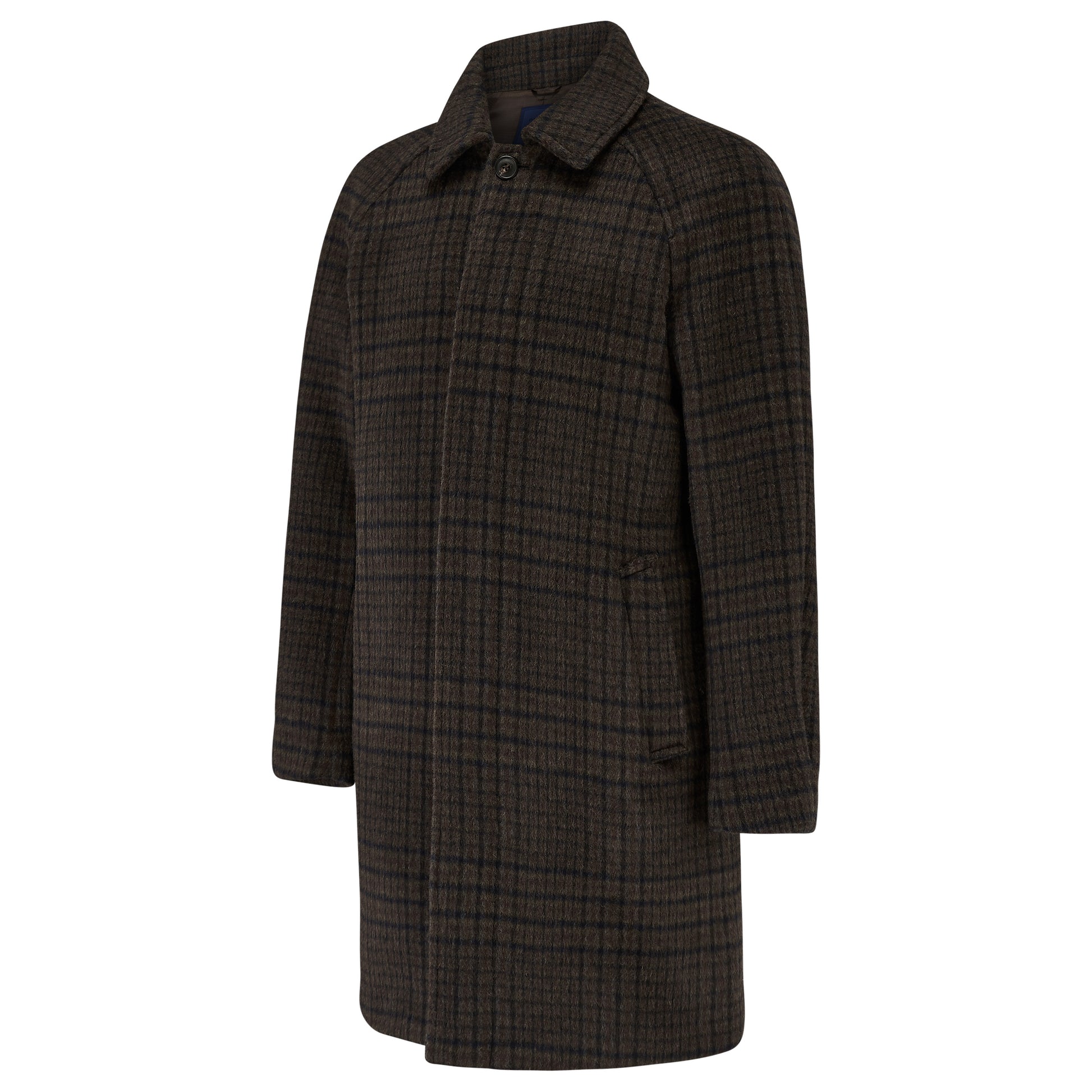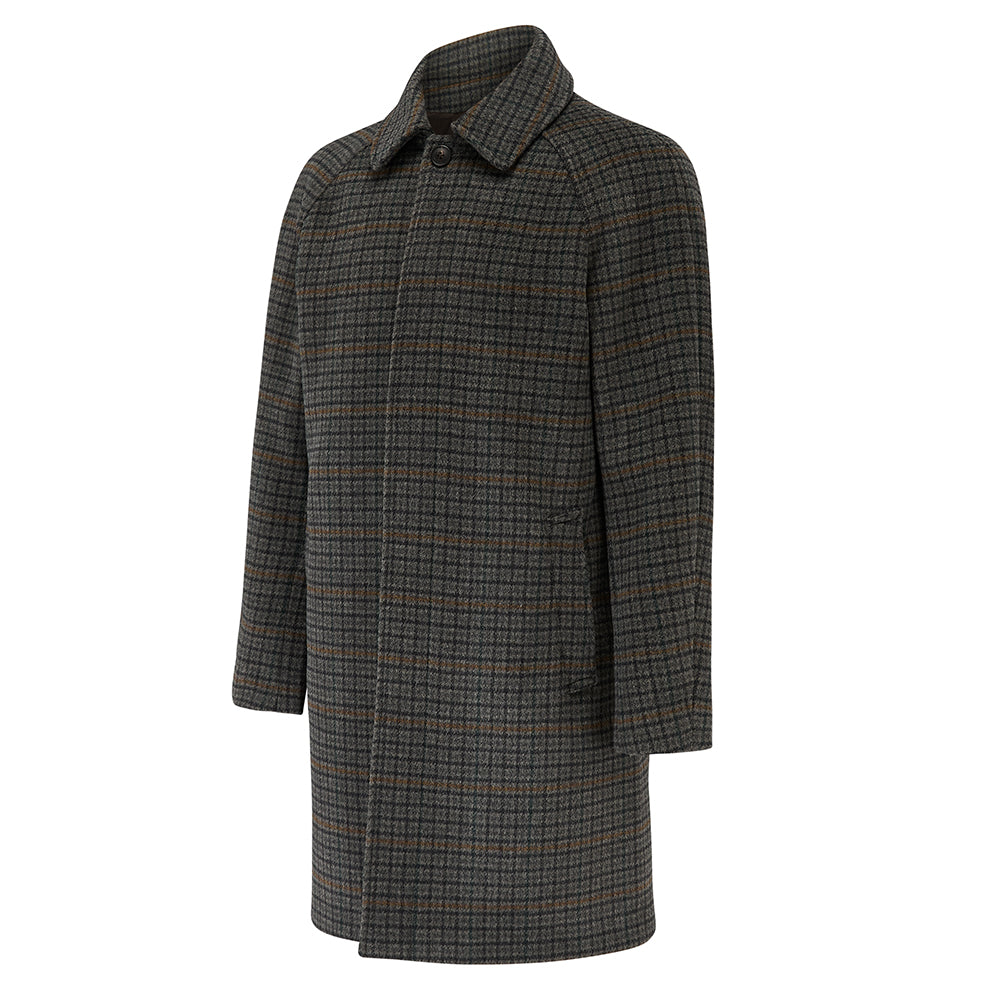 The men's Coldstream overcoat is crafted from a wool rich grey check fabric, it features a point collar, a concealed button-front placket and is half lined for a softer streamlined look.